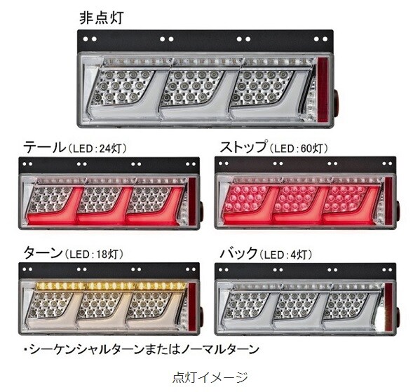 小糸製作所/KOITO トラック用オールLEDリアコンビネーションランプ クリアVer シーケンシャルターン 左側 3連タイプ 入数:1個 LEDRCL-24LSC
