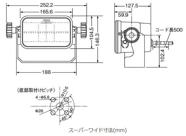小糸製作所/KOITO LEDワーキングランプ角型タイプ 12/24V 75W スーパーワイド 入数:1個 LWLR-1224P1