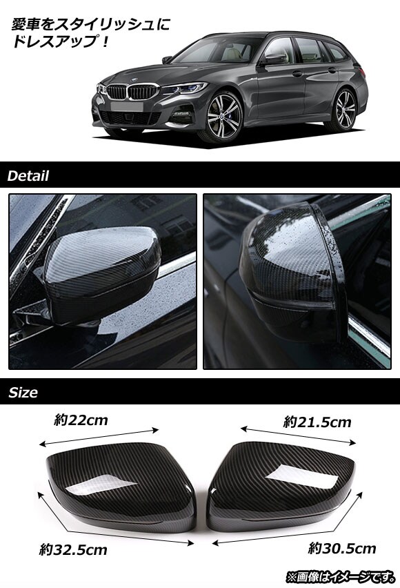 ドアミラーカバー BMW 3シリーズ G20 2019年03月~ ブラックカーボン ABS樹脂製 左ハンドル車用 入数:1セット(左右) AP-DM168