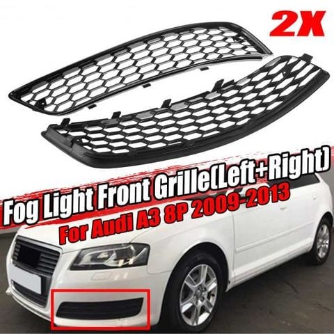 A ペア 光沢 ブラック フロント フォグライト グリル カバー ハニカム 適用: アウディ/AUDI A3 8P 2009-2013 8P0807682J 8P080768 AL-II-3643 AL