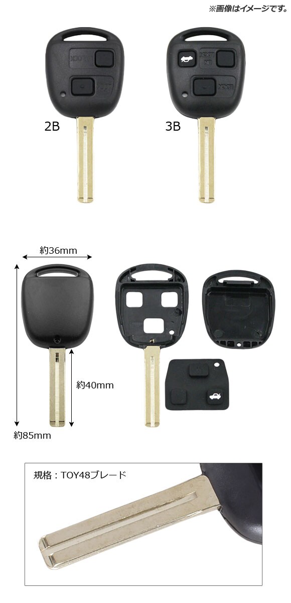 ブランクキー/キーシェル 規格:TOY48 2ボタン パッド付 レクサス、トヨタ汎用 AP-AS325-2B