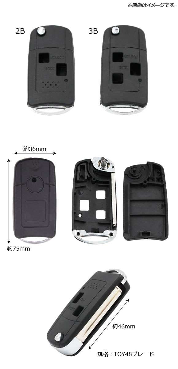 ブランクキー/ジャックナイフキー 規格:TOY48 2ボタン レクサス、トヨタ汎用 AP-AS326-2B