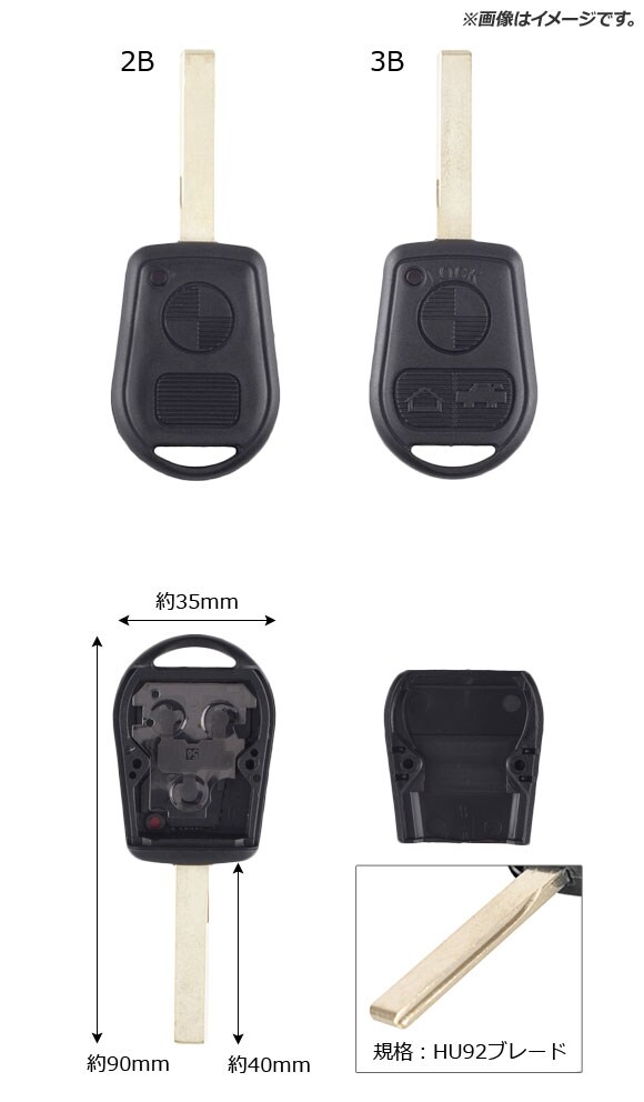 ブランクキー/キーシェル 規格:HU92 2ボタン BMW汎用 AP-AS321-2B