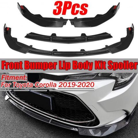 カーボン調 3ピース フロント バンパー スプリッタ リップ スポイラー トリム ディフューザー ガード プロテクター 適用: トヨタ カローラ 2019 2020 AL-II-3885 AL