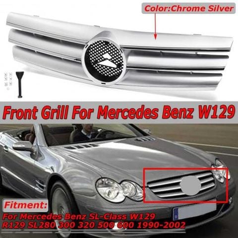 フロント バンパー グリル カバー 適用: メルセデス ベンツ SL クラス W129 R129 SL280 300 320 500 600 1990 2002 クローム シルバー AL-II-3954 AL