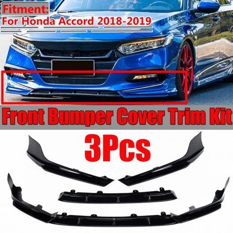 3ピース フロント バンパー リップ スポイラー スプリッタ リップ ディフューザー サラウンド モールディング カバー トリム 適用: ホンダ アコード 2018 2019 光沢ブラック AL-II-4104 AL