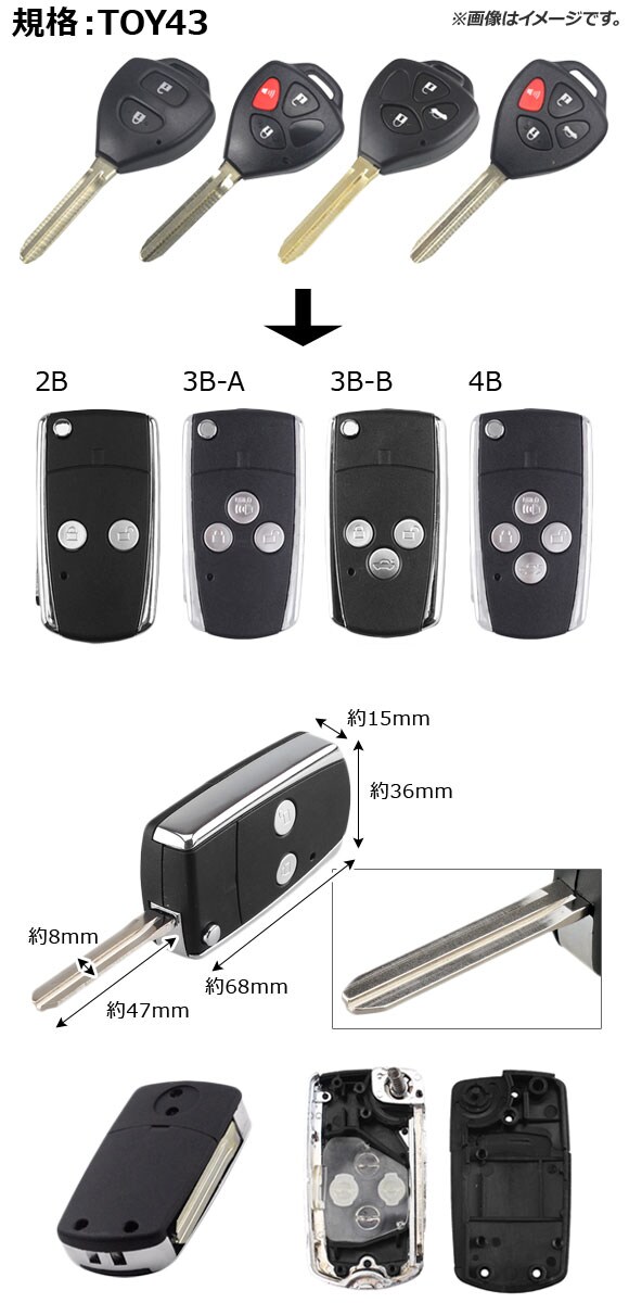 ブランクキー/ジャックナイフキー 規格:TOY43 3ボタン トヨタ汎用 AP-AS313-3B-B