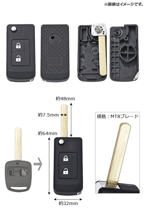 ブランクキー/ジャックナイフキー 規格:MT8 2ボタン スバル汎用 AP-AS339