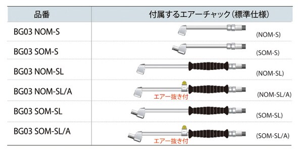 耐久性があり折れにくいソフトなホースを採用。ロータリージョイント機構により、ゲージとエアチャックが自在に回転できます。