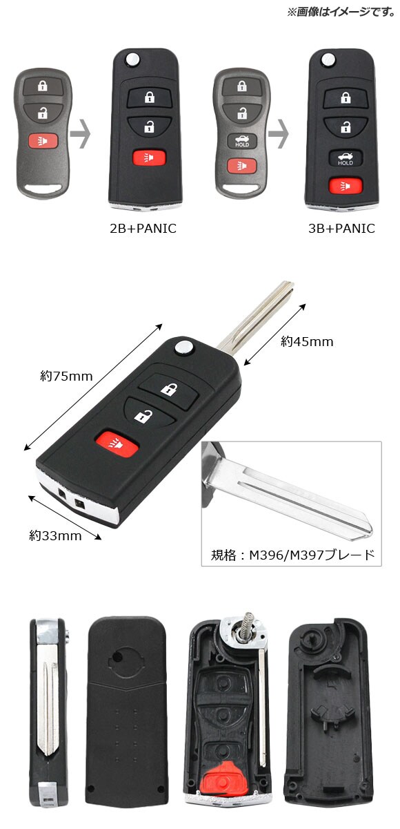ブランクキー/ジャックナイフキー 規格:M396/M397 3ボタン+パニックボタン ニッサン汎用 AP-AS359-3B-PANIC