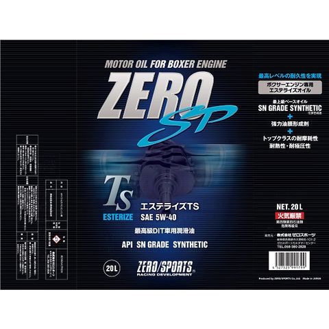 ゼロスポーツ/ZERO SPORTS ZERO SP エステライズTS エンジンオイル 20Lペール缶 5W-40 0826024