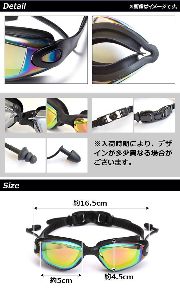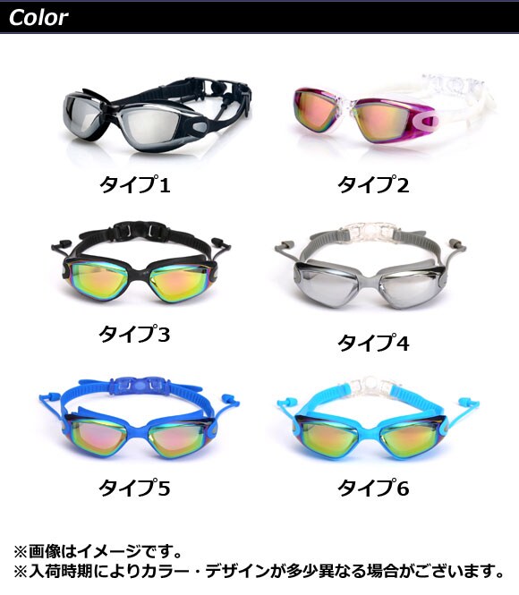 スイミングゴーグル 度なし ミラータイプ UVカット 耳栓付き 選べる6タイプ AP-AR298