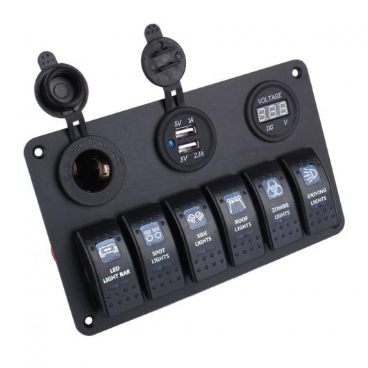 6スイッチ 防水 マリン ボート 回路 ブルー LED ロッカー スイッチ パネル ブレーカー AL-JJ-0369 AL