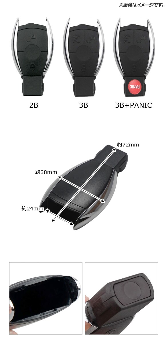 キーシェルリモコンケース ブレードなし 3ボタン メルセデス・ベンツ汎用 AP-AS367-3B