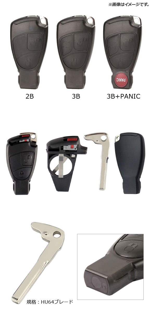ブランクキー/キーシェルリモコン 規格:HU64 3ボタン+パニックボタン メルセデス・ベンツ汎用 AP-AS374-3B-PANIC