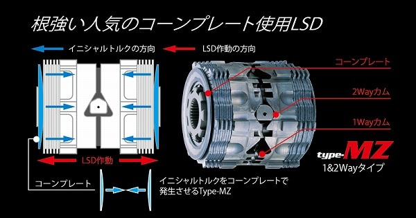 タイプMZはLSD効果を引き出すイニシャルトルクのかかり方(発生方式)がタイプRSと異なります。