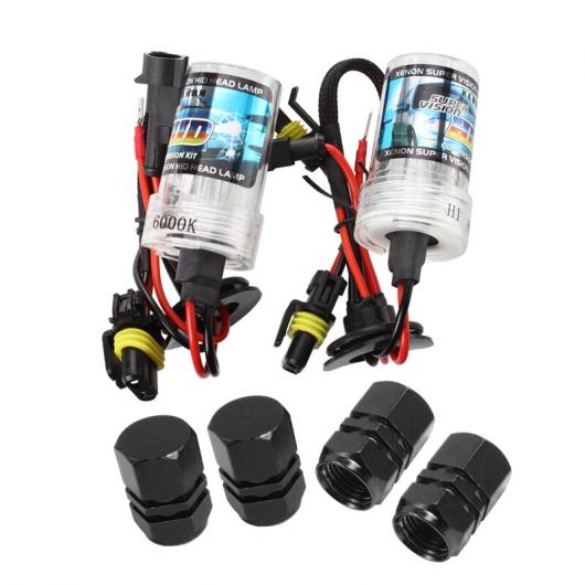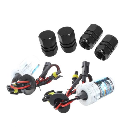 2ピース H1 フロント ライト ヘッドライト ホワイト キセノン バルブ 35W 6000K & 4ピース ブラック 金属 六角形 オート タイヤ タイヤ バルブ キャップ タイプ001 AL-JJ-3239 AL