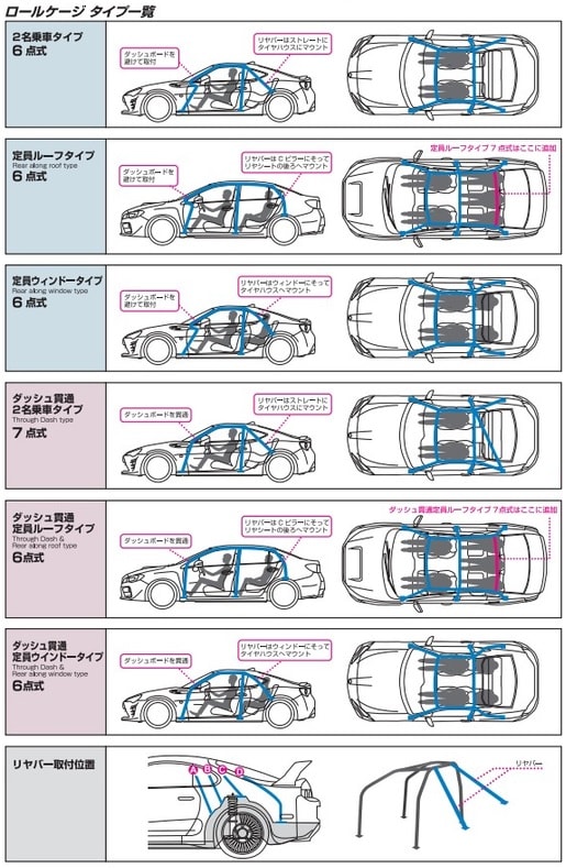 ●JAF競技規定から幅広く対応するタイプバリエーション、ロールケージ全体からジョイント部まで軽量化を追求