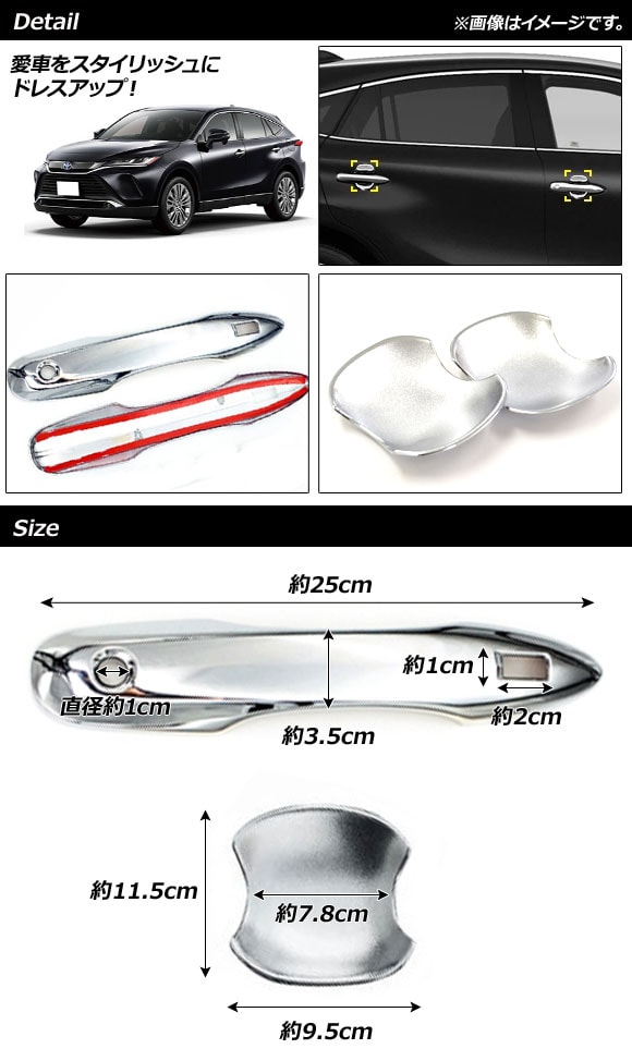 ドアハンドルカバーセット トヨタ ハリアー 80系 Sグレード 2020年06月~ シルバー ABS樹脂製 入数:1セット(8個) AP-XT589