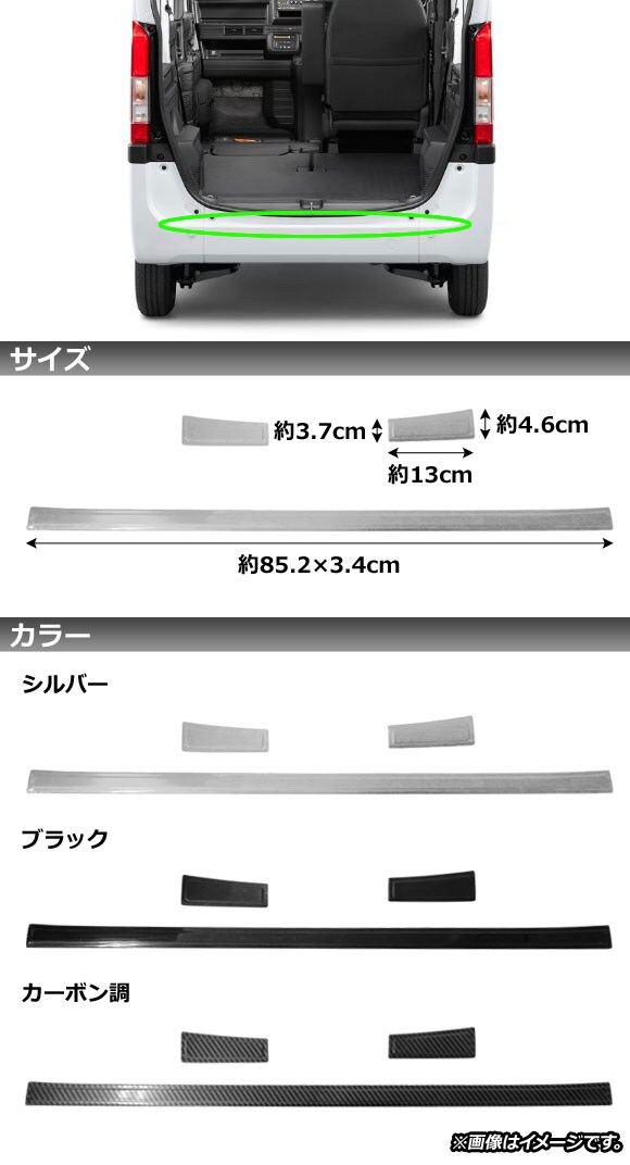 リアスカッフプレート ホンダ N-VAN JJ1/JJ2 2018年07月~ カーボン調 ステンレス製 入数:1セット(3個) AP-SG116-BKC