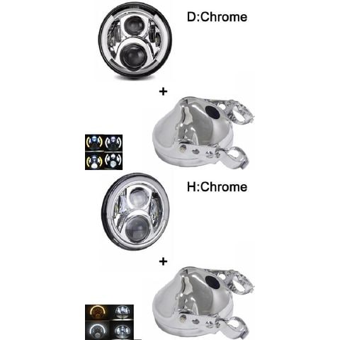 7 ヘッドライト オートバイ 7インチ LED ヘッドライト バケツ トリム リング 適用: ソフテイル ダイナ オートバイ プロジェクター 60W クローム 1セット AL-KK-2644 2輪 AL