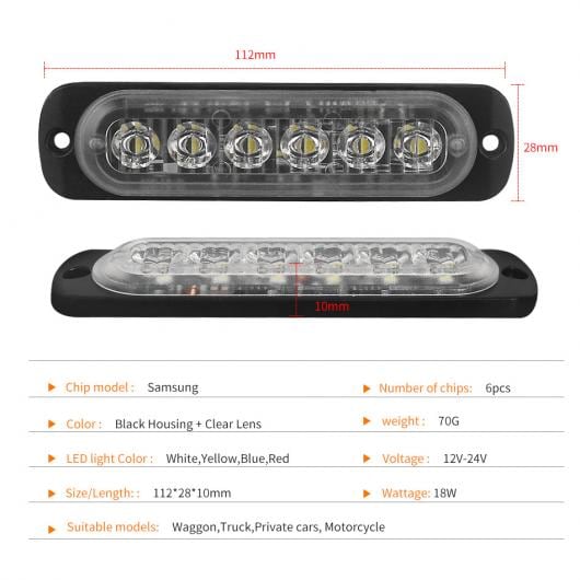 2ピース 12LED 18W 12V-24V アンバー 色 6-LED ワーニング ライト LED ストロボ ライト トラック バン サイド ストロボ エマージェンシー ライト ホワイト~ブルー レッド AL-KK-2781 AL