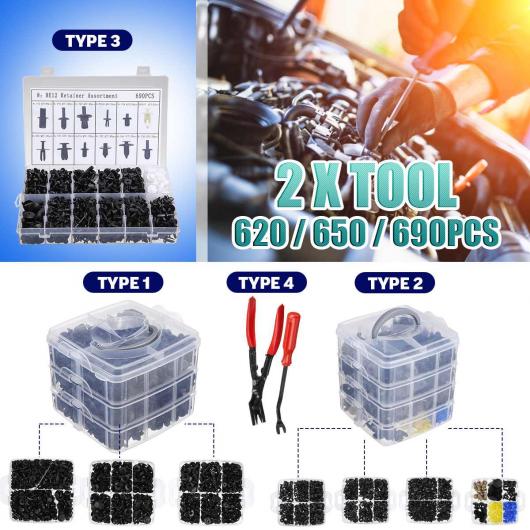 ファスナー クリップ リムーバル ツール ドア トリム パネル バンパー プッシュ リベット 固定器具 エンジン カバー クリップ アクセサリー 690ピース AL-KK-3349 AL