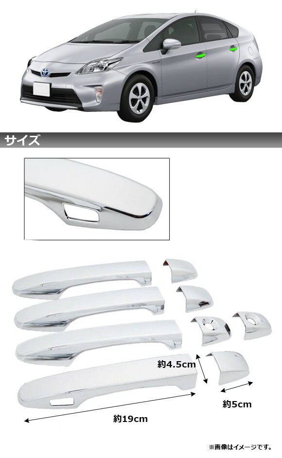 ドアハンドルカバー トヨタ プリウスα ZVW40/41 2011年05月~ 鏡面シルバー キーレス対応カバー1個 入数:1セット(9個)
