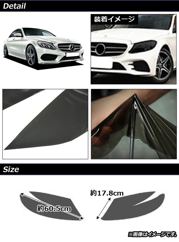 ヘッドライトフィルム メルセデス・ベンツ Cクラス W205 2015年~ スモーク TPU製 AP-XT609 入数:1セット(左右)