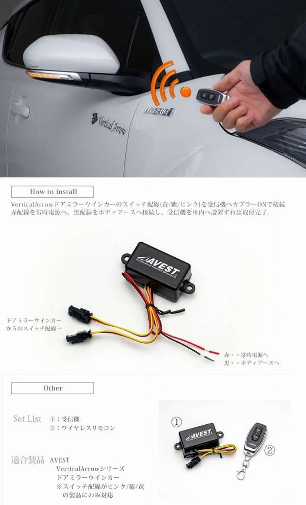 セット内容:ドアミラーウインカーレンズ+専用ドアミラーカバー・配線キット・切替スイッチ