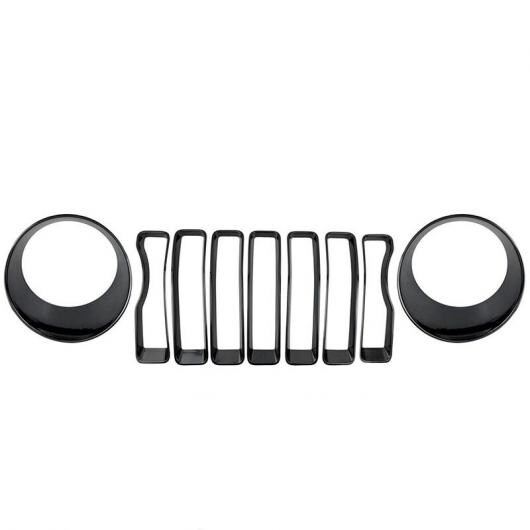 ABS 光沢ブラック フロント メッシュ グリル + ヘッドライト トリム カバー 適用: ジープ/JEEP ラングラー JL 2018 2019 アクセサリー AL-KK-4022 AL
