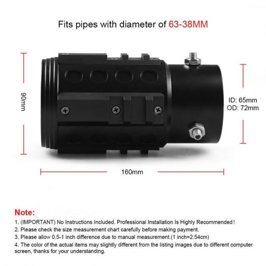38mm-6M ユニバーサル テール スロート アルミニウム リア ラウンド エキゾースト パイプ テール チップ パイプ 産業車両 スタイル ブラック AL-KK-5738 AL