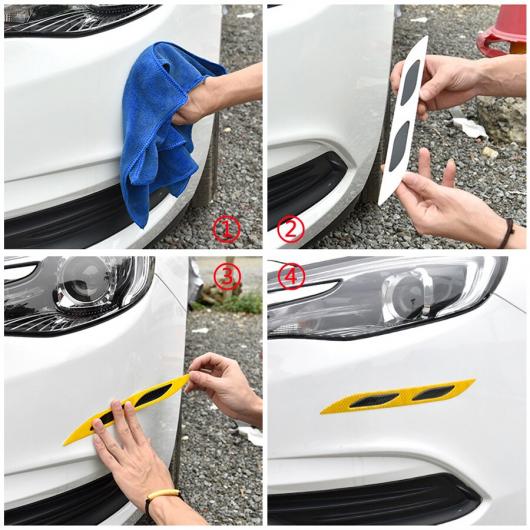 2ピース カーボンファイバー 反射 ストリップ トラック オート バンパー プロテクター ステッカー 3D キズ防止 セーフティー ワーニング テープ ホワイト~イエロー AL-KK-6900 AL