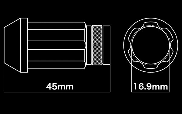 ※ナットがホイールより突出しますと車検に適合しない場合がございます。また、レース車検においてもレギュレーションによりホイールスポーク部よりナットが突出すると適合しない場合がございます。