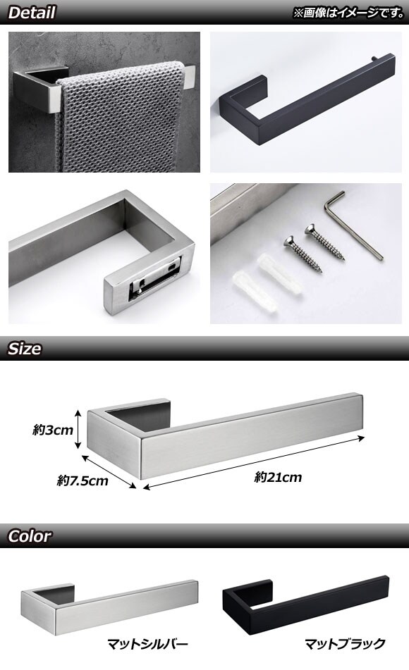 ハンドタオルホルダー マットブラック ステンレス製 ビス止めタイプ AP-UJ0771-D-MBK