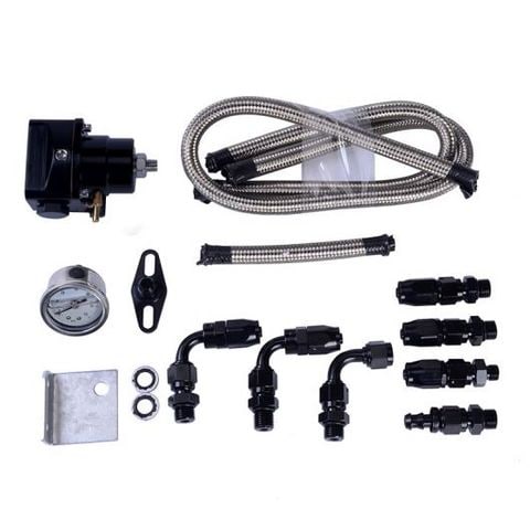 ユニバーサル 調整可能 フューエル プレッシャー レギュレーター キット 160PSI ゲージ AN6 ホース エンド 編み込み オイル ホース ターボ + 液体 ゲージ ブラック AL-LL-0363 AL