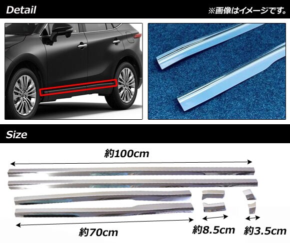 サイドドアアンダーガーニッシュ トヨタ ハリアー/ハリアーハイブリッド 80系 2020年06月~ シルバー ステンレス製 入数:1セット(8個) AP-DG162
