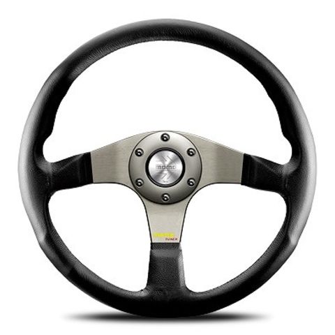 MOMO/モモ チューナー ダークグレイスポーク ステアリング ブラックレザー ブラックステッチ 350mm T-12
