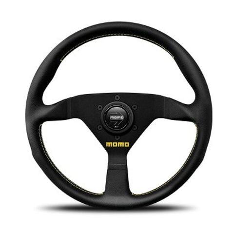 MOMO/モモ ヴェローチェ レーシング ステアリング ブラックレザー イエローステッチ 320mm V-2