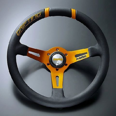 MOMO/モモ DRIFTING ステアリング ブラックレザー/オレンジスポーク(オレンジステッチ) 330mm/85mm DEEP