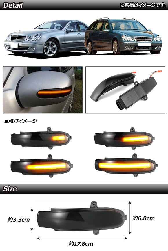 LED流れるドアミラーウインカーレンズ メルセデス・ベンツ Cクラス W203/S203/C203 2000年~2007年 スモーク 入数:1セット(左右) AP-LL280