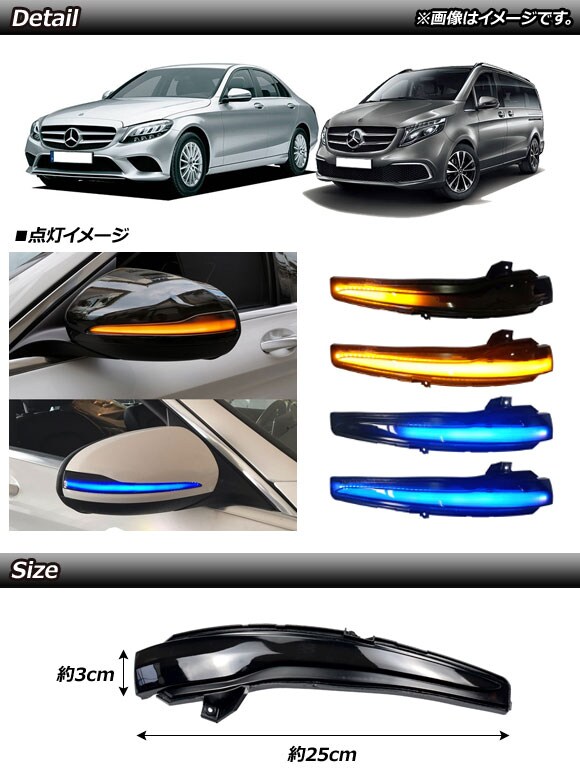 LED流れるドアミラーウインカーレンズ メルセデス・ベンツ Vクラス W447 2015年~2020年 ブルー×アンバー スモークレンズ 入数:1セット(左右)
