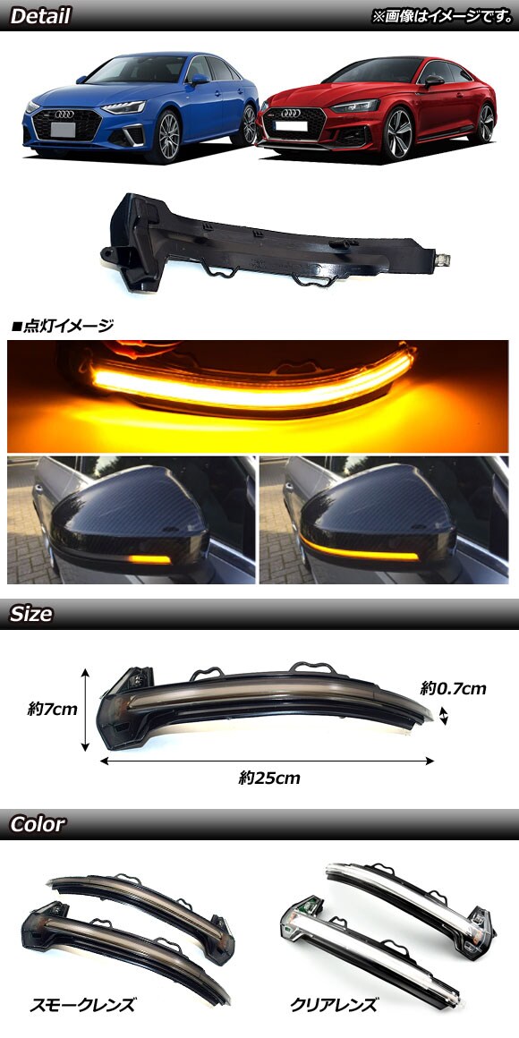 LED流れるドアミラーウインカーレンズ アウディ A5スポーツバック/S5/RS5 F5 2017年~ クリア 入数:1セット(左右)