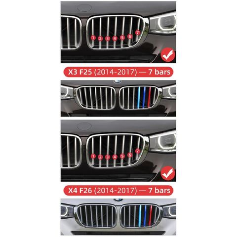 3ピース フロント グリル トリム ストリップ ステッカー 適用: BMW E90 E60 F10 F20 F30 F34 G30 X1 E84 F48 X3 F25 X5 F15 16 X3 F25 14-17 7バー・X4 F26 14-17 7バー AL-LL-1311 AL