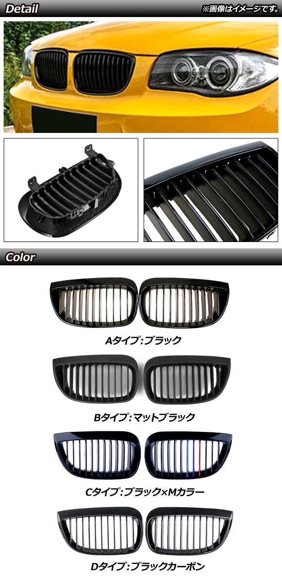 フロントグリルカバー BMW 1シリーズ E87 前期 2004年~2007年 ブラック ABS製 シングルバー 入数:1セット(2個) AP-FG297-A