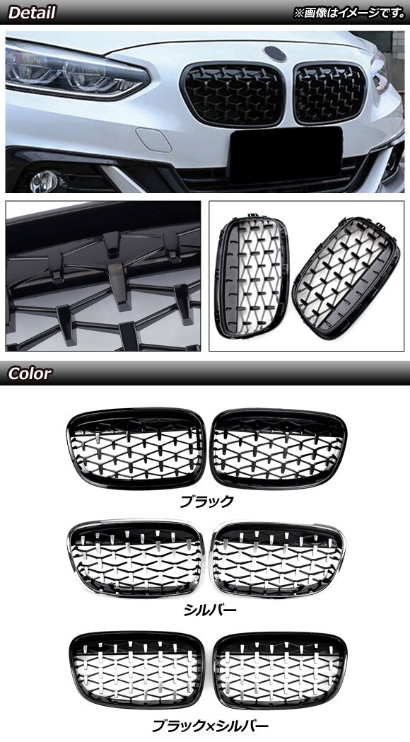フロントグリルカバー BMW 1シリーズ F20/F21 前期 2010年~2014年 シルバー ABS製 入数:1セット(2個) AP-FG298-SI