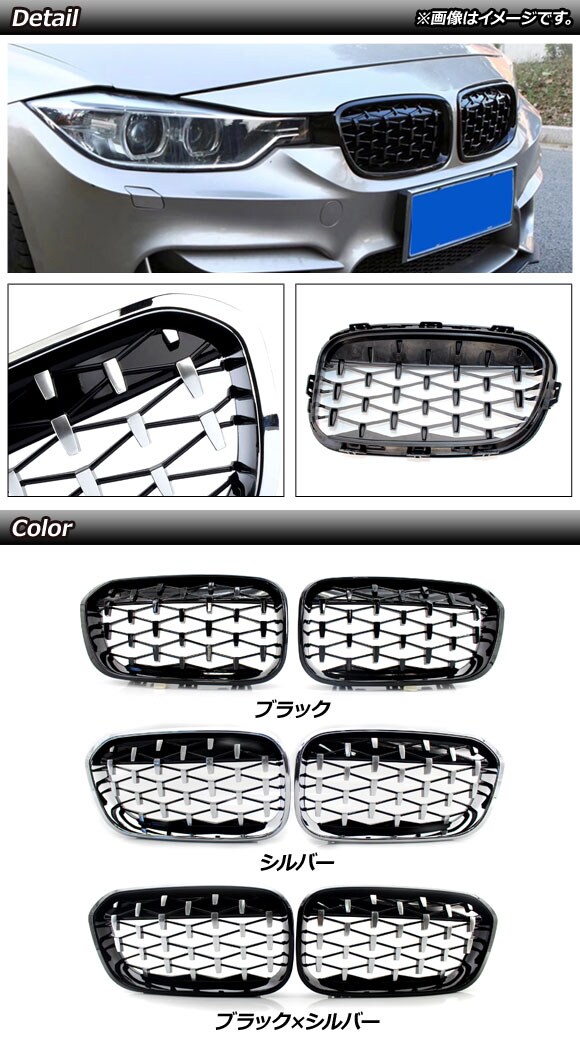 フロントグリルカバー BMW 1シリーズ F20/F21 後期 2015年~2019年 シルバー ABS製 入数:1セット(2個) AP-FG301-SI