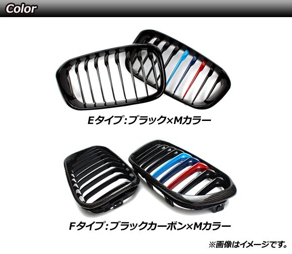 フロントグリルカバー BMW 1シリーズ F20/F21 後期 2015年~2019年 ブラックカーボン×Mカラー Fタイプ ABS製 シングルバー 入数:1セット(2個) AP-FG303-F
