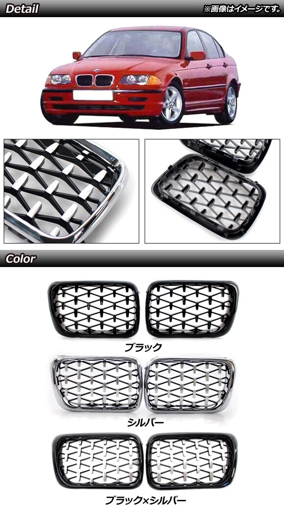 フロントグリルカバー BMW 3シリーズ E36 1997年~1999年 ブラック×シルバー ABS製 入数:1セット(2個) AP-FG304-BKSI