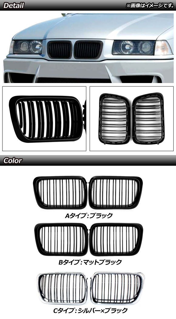 フロントグリルカバー BMW 3シリーズ E36 1997年~1999年 シルバー×ブラック Cタイプ ABS製 ダブルバー 入数:1セット(2個) AP-FG305-C